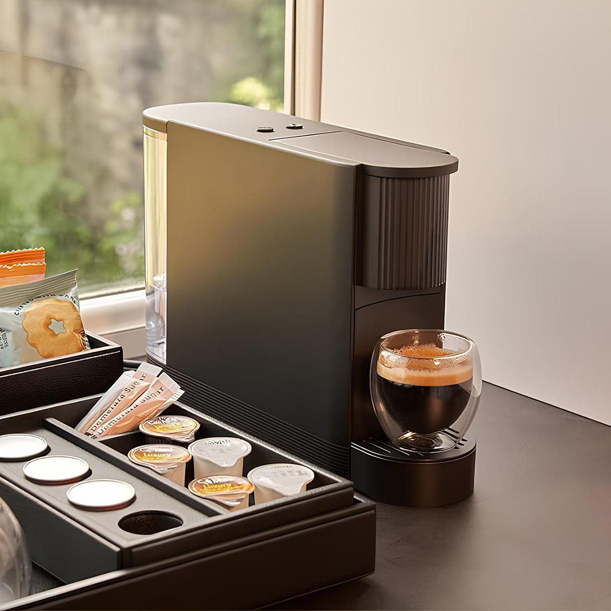 - حجم کم و طراحی زیبا: قهوهسازهای کپسولی معمولاً دارای طراحی زیبا و جمع و جوری هستند که به راحتی در هر فضایی جا میشوند.