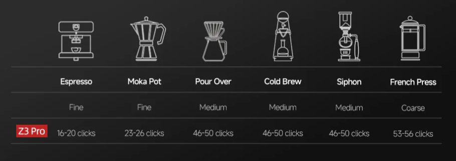با ۲۰ کلیک در هر چرخش کامل و دقت هر کلیک 0/025 میلیمتر، امکان دستیابی به تنظیمات حرفهای و کنترل کامل بر سایز سابه قهوه فراهم است و شما میتوانید سابه موردنیاز برای دمآوری انواع قهوه، از اسپرسو و دمی تا فرنچ پرس و کلد برو را به وسیله این دستگاه آسیاب تهیه کنید، هرچند پیشنهاد میشود اگر به دنبال دستیابی به اسپرسویی با کیفیت مداوم، کرمای مطلوب و تکرارپذیری در عصارهگیری هستید از دستگاههای آسیاب برقی استفاده کنید.
